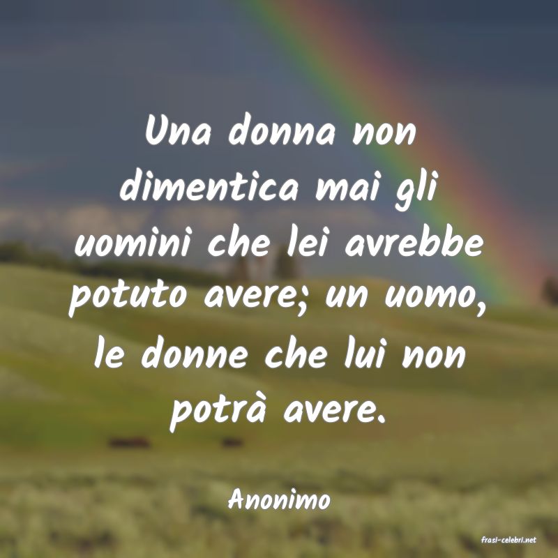Una donna non dimentica mai gli uomini che lei avrebbe potuto avere; un uomo, le donne che lui non potrà avere.