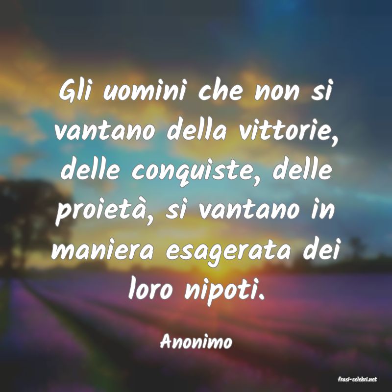 Gli uomini che non si vantano della vittorie, delle conquiste, delle proietà, si vantano in maniera esagerata dei loro nipoti.