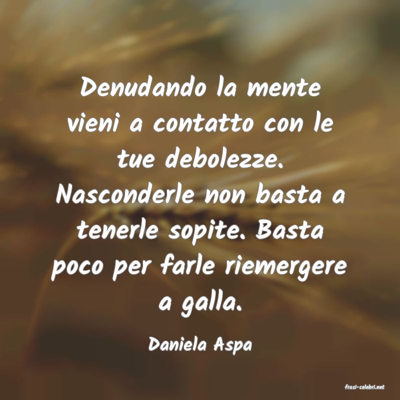 Denudando la mente vieni a contatto con le tue debolezze. Nasconderle non basta a tenerle sopite. Basta poco per farle riemergere a galla.