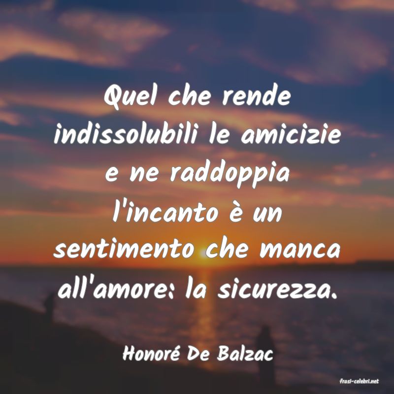Quel che rende indissolubili le amicizie e ne raddoppia l'incanto è un sentimento che manca all'amore: la sicurezza. Honor? De Balzac