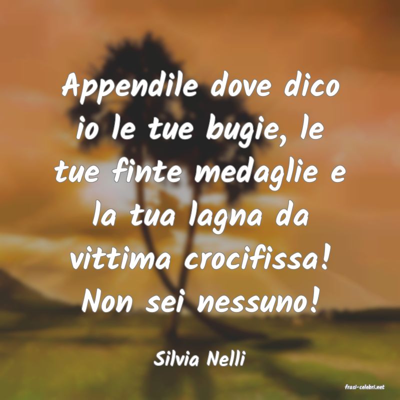 Appendile dove dico io le tue bugie, le tue finte medaglie e la tua lagna da vittima crocifissa! Non sei nessuno!