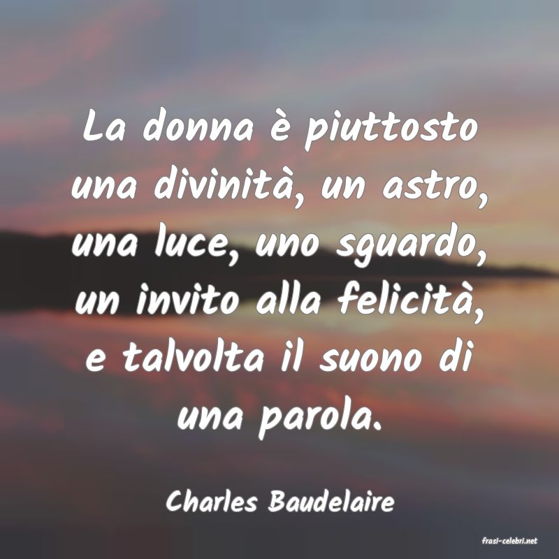 La donna è piuttosto una divinità, un astro, una luce, uno sguardo, un invito alla felicità, e talvolta il suono di una parola.