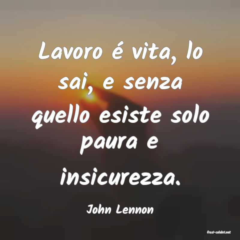 Lavoro é vita, lo sai, e senza quello esiste solo paura e insicurezza.