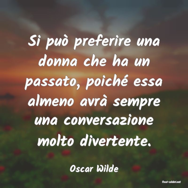 Si può preferire una donna che ha un passato, poiché essa almeno avrà sempre una conversazione molto divertente.