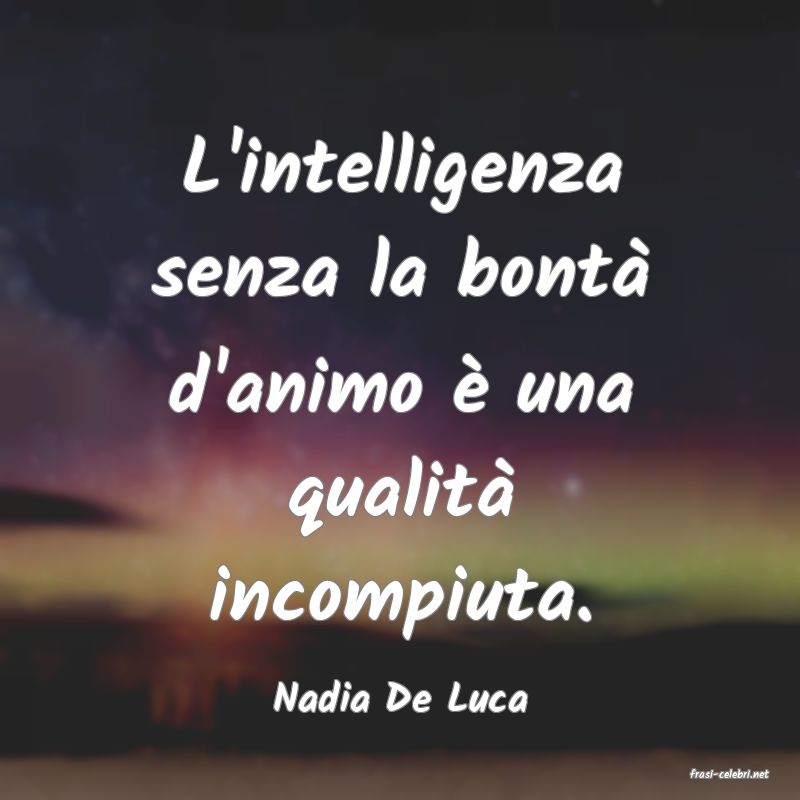 L'intelligenza senza la bontà d'animo è una qualità incompiuta. Nadia De Luca