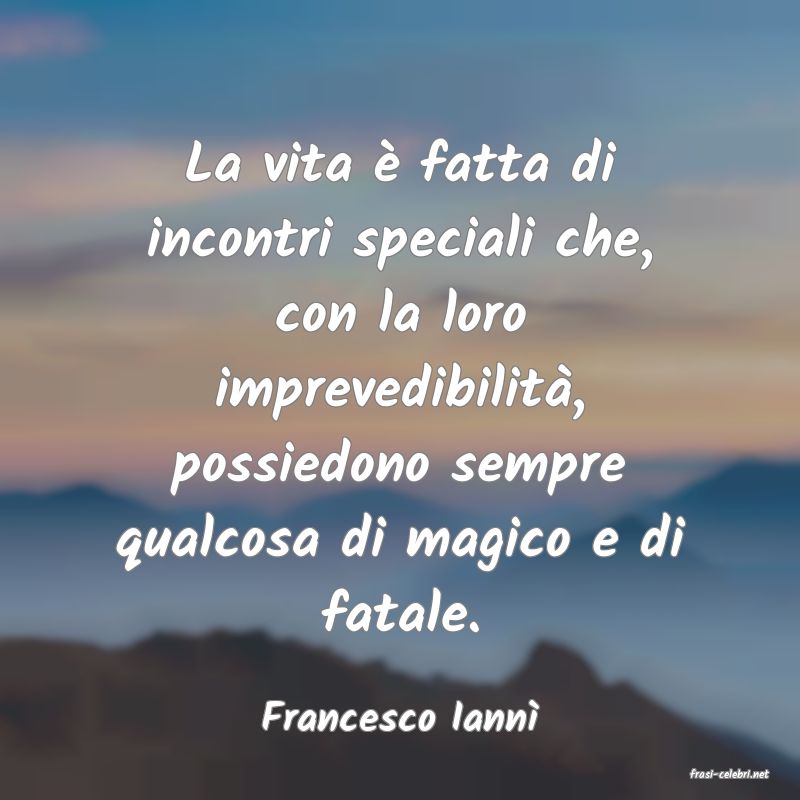 La vita è fatta di incontri speciali che, con la loro imprevedibilità, possiedono sempre qualcosa di magico e di fatale. Francesco Iann?