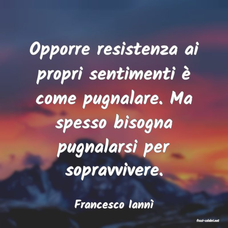 Opporre resistenza ai propri sentimenti è come pugnalare. Ma spesso bisogna pugnalarsi per sopravvivere. Francesco Iann?