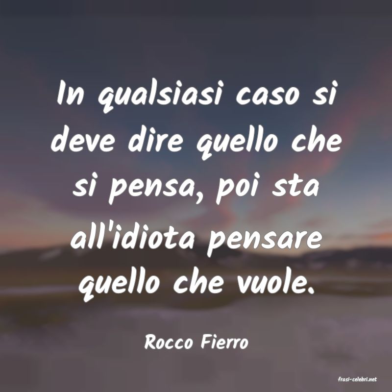 In qualsiasi caso si deve dire quello che si pensa, poi sta all'idiota pensare quello che vuole.