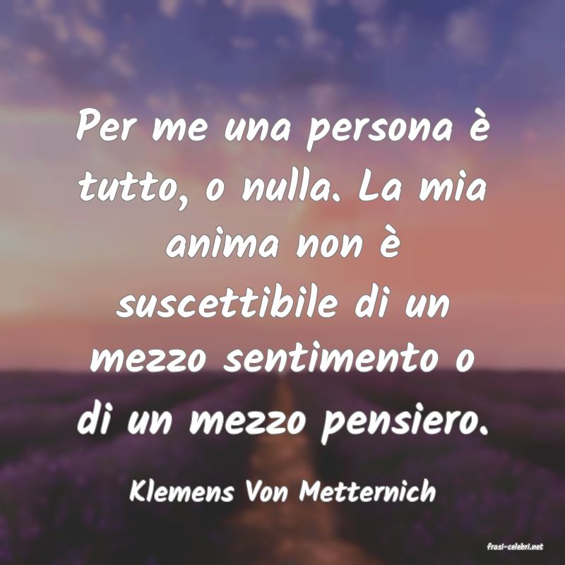 Per me una persona è tutto, o nulla. La mia anima non è suscettibile di un mezzo sentimento o di un mezzo pensiero.