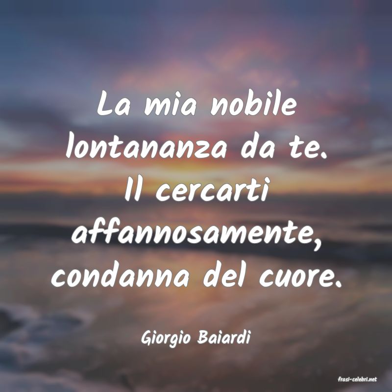 La mia nobile lontananza da te. Il cercarti affannosamente, condanna del cuore.