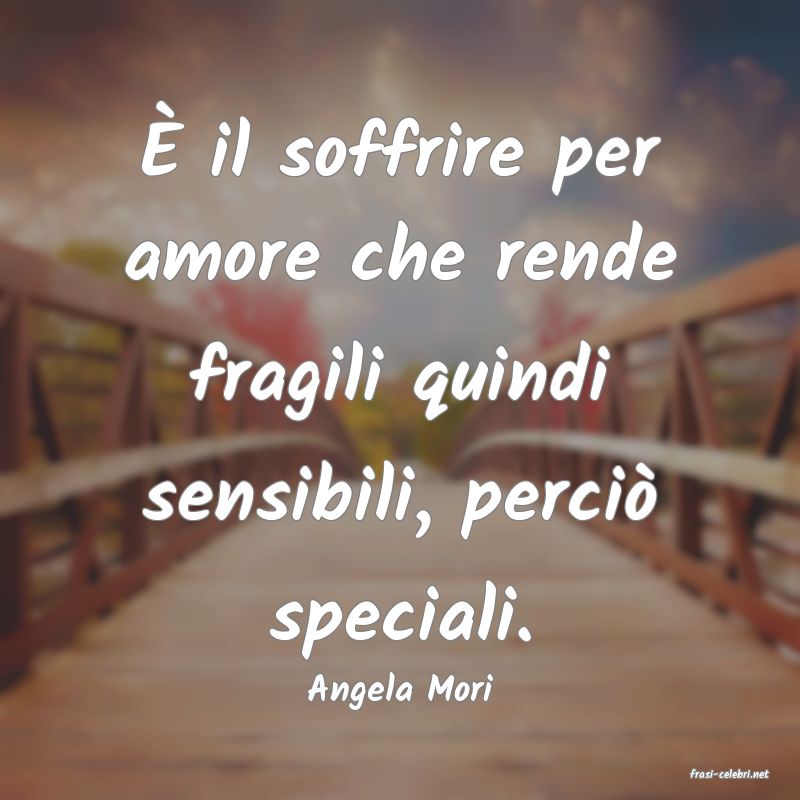 È il soffrire per amore che rende fragili quindi sensibili, perciò speciali. Angela Mori