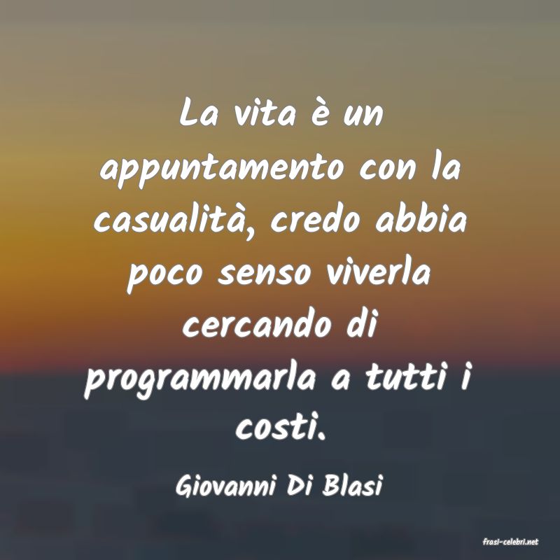 La vita è un appuntamento con la casualità, credo abbia poco senso viverla cercando di programmarla a tutti i costi.