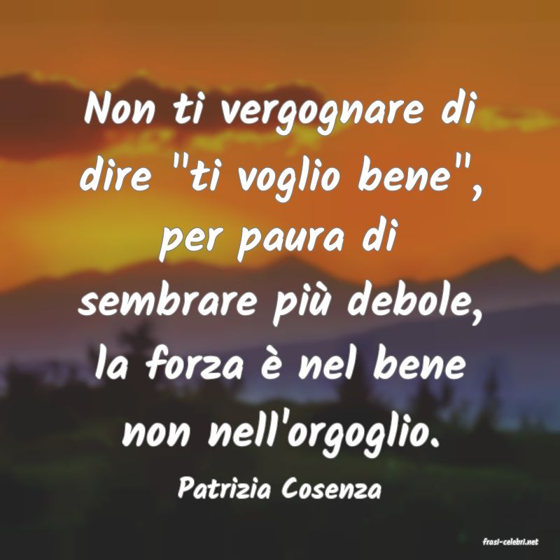 Non ti vergognare di dire "ti voglio bene", per paura di sembrare più debole, la forza è nel bene non nell'orgoglio.
