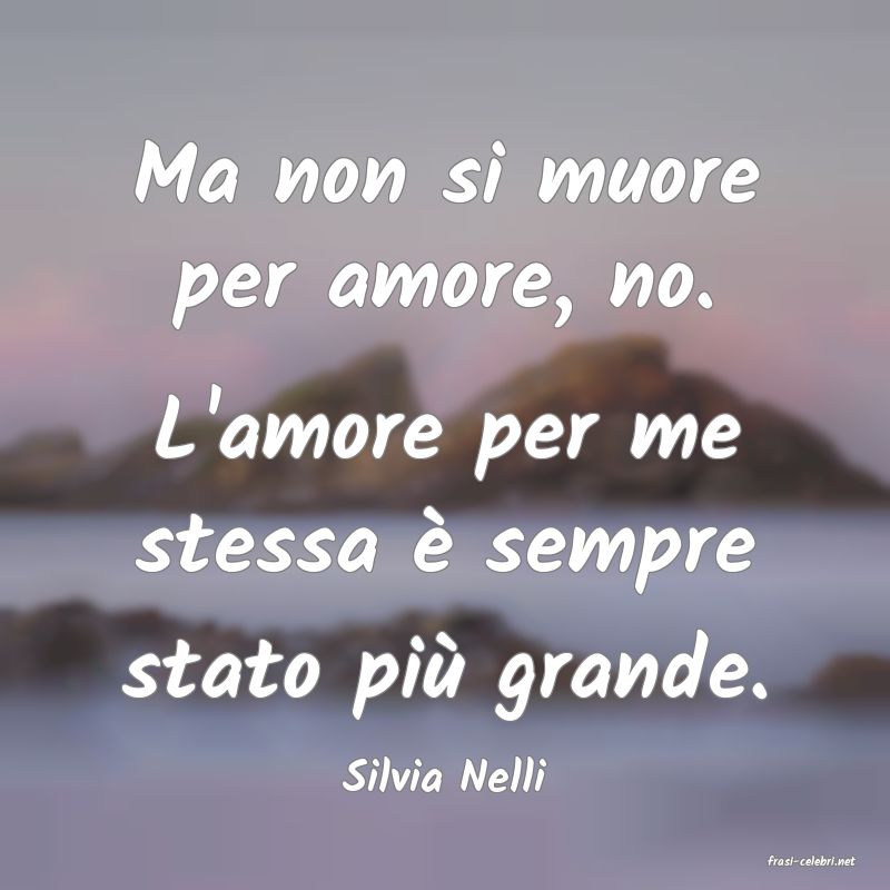Ma non si muore per amore, no. L'amore per me stessa è sempre stato più grande.