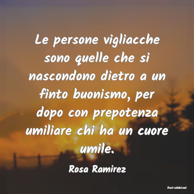 Le persone vigliacche sono quelle che si nascondono dietro a un finto buonismo, per dopo con prepotenza umiliare chi ha un cuore umile.