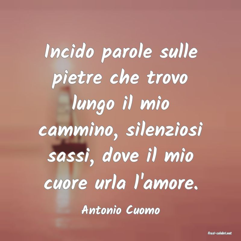 Incido parole sulle pietre che trovo lungo il mio cammino, silenziosi sassi, dove il mio cuore urla l'amore.