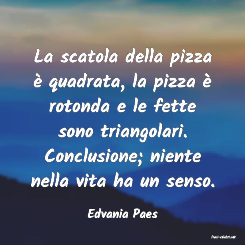 La scatola della pizza è quadrata, la pizza è rotonda e le fette sono triangolari. Conclusione; niente nella vita ha un senso.