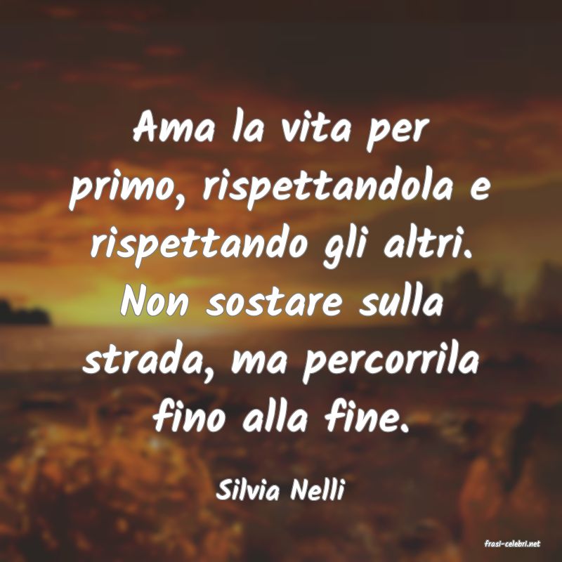 Ama la vita per primo, rispettandola e rispettando gli altri. Non sostare sulla strada, ma percorrila fino alla fine.