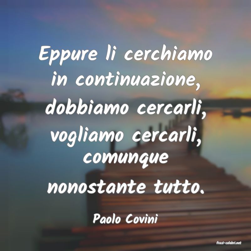 Eppure li cerchiamo in continuazione, dobbiamo cercarli, vogliamo cercarli, comunque nonostante tutto.