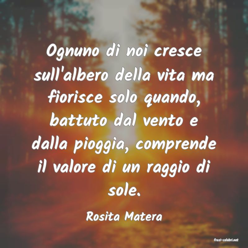 Ognuno di noi cresce sull'albero della vita ma fiorisce solo quando, battuto dal vento e dalla pioggia, comprende il valore di un raggio di sole.