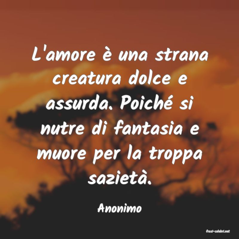 L'amore è una strana creatura dolce e assurda. Poiché si nutre di fantasia e muore per la troppa sazietà.
