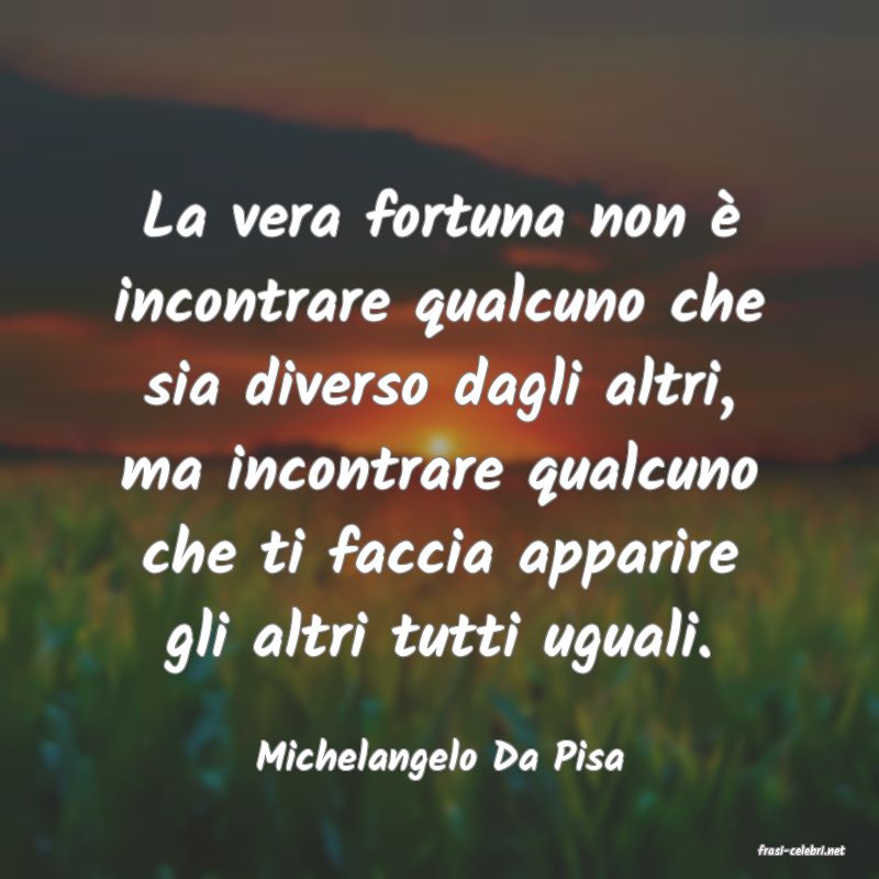 La vera fortuna non è incontrare qualcuno che sia diverso dagli altri, ma incontrare qualcuno che ti faccia apparire gli altri tutti uguali.