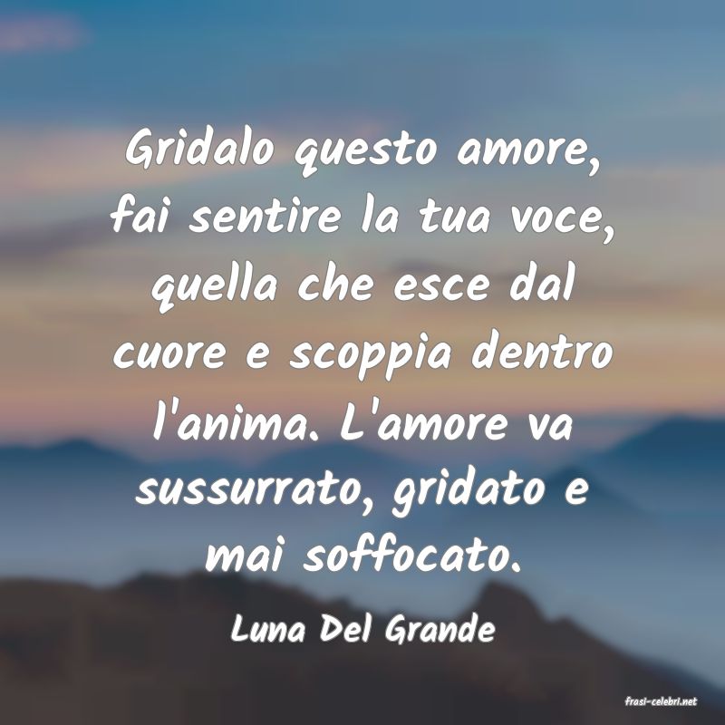 Gridalo questo amore, fai sentire la tua voce, quella che esce dal cuore e scoppia dentro l'anima. L'amore va sussurrato, gridato e mai soffocato.