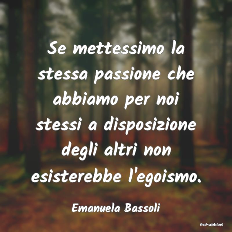 Se mettessimo la stessa passione che abbiamo per noi stessi a disposizione degli altri non esisterebbe l'egoismo.