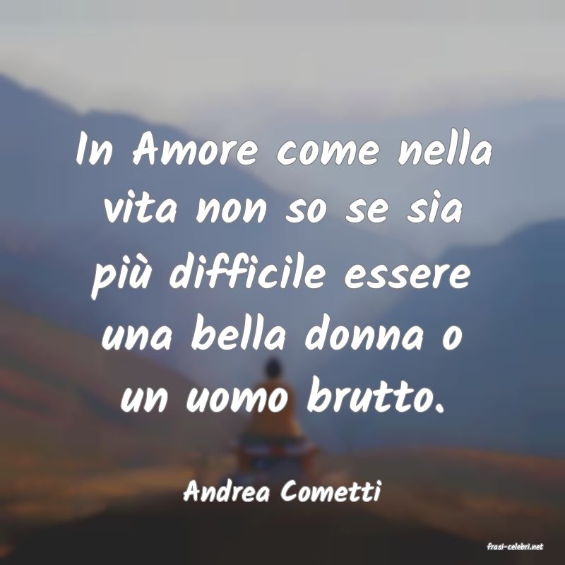 In Amore come nella vita non so se sia più difficile essere una bella donna o un uomo brutto.