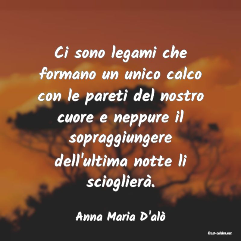 Ci sono legami che formano un unico calco con le pareti del nostro cuore e neppure il sopraggiungere dell'ultima notte li scioglierà. Anna Maria D'al?