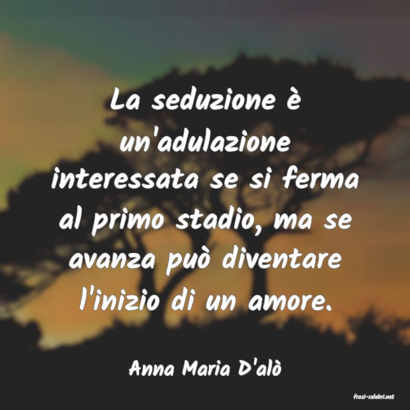La seduzione è un'adulazione interessata se si ferma al primo stadio, ma se avanza può diventare l'inizio di un amore. Anna Maria D'al?