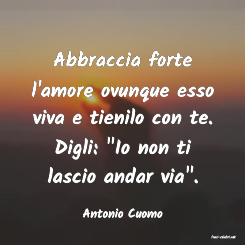 Abbraccia forte l'amore ovunque esso viva e tienilo con te. Digli: "Io non ti lascio andar via".