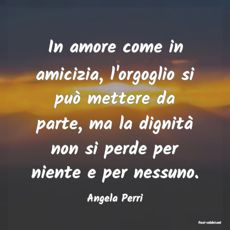 In amore come in amicizia, l'orgoglio si può mettere da parte, ma la dignità non si perde per niente e per nessuno.