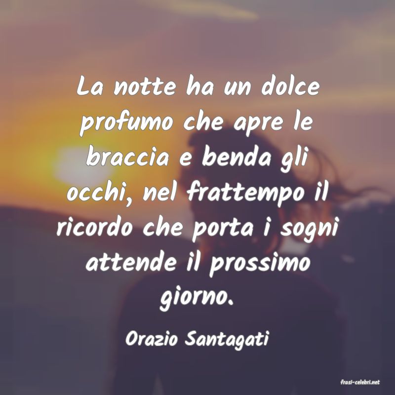 La notte ha un dolce profumo che apre le braccia e benda gli occhi, nel frattempo il ricordo che porta i sogni attende il prossimo giorno.