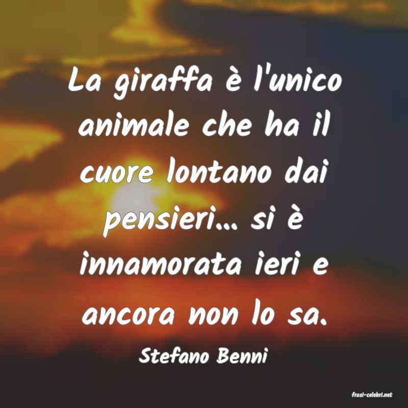 La giraffa è l'unico animale che ha il cuore lontano dai pensieri... si è innamorata ieri e ancora non lo sa.