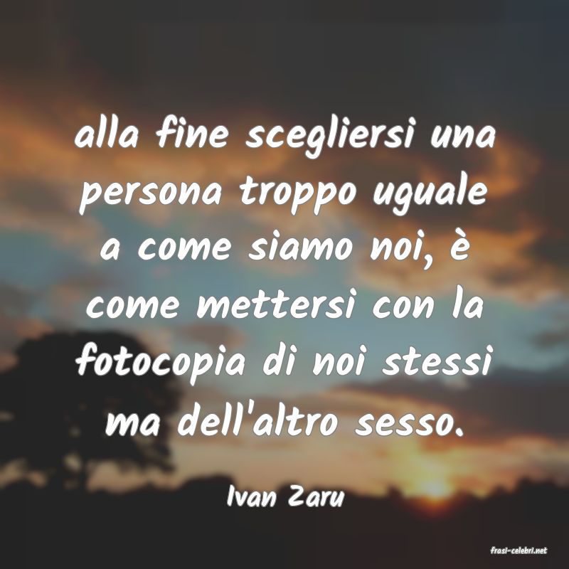 Alla fine scegliersi una persona troppo uguale a come siamo noi, è come mettersi con la fotocopia di noi stessi ma dell'altro sesso.