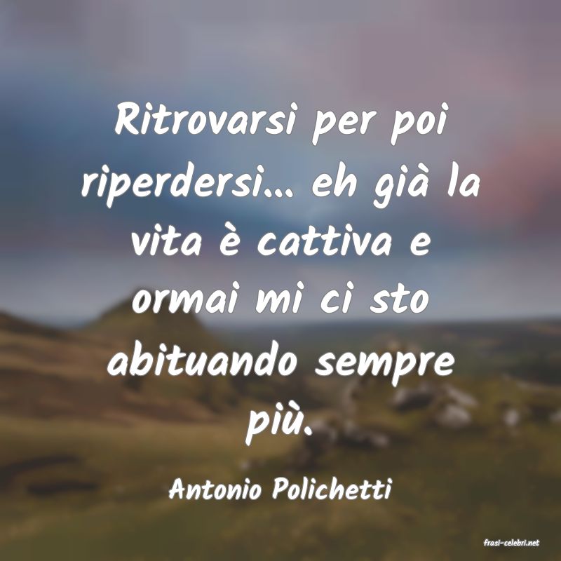 Ritrovarsi per poi riperdersi... eh già la vita è cattiva e ormai mi ci sto abituando sempre più.