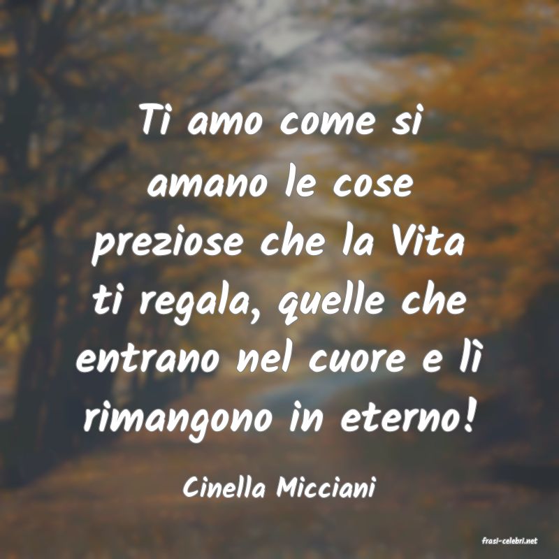 Ti amo come si amano le cose preziose che la Vita ti regala, quelle che entrano nel cuore e lì rimangono in eterno!