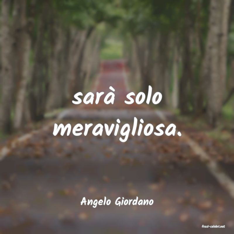 Sarà solo meravigliosa.