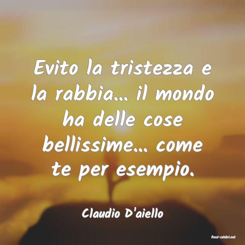 Evito la tristezza e la rabbia... il mondo ha delle cose bellissime... come te per esempio. Claudio D'aiello
