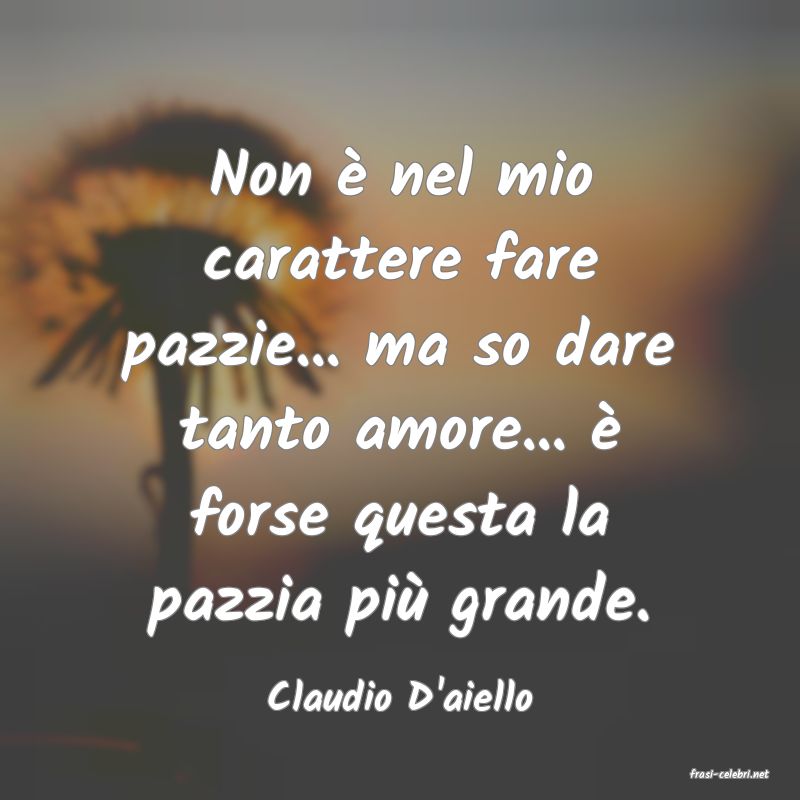Non è nel mio carattere fare pazzie... ma so dare tanto amore... è forse questa la pazzia più grande. Claudio D'aiello