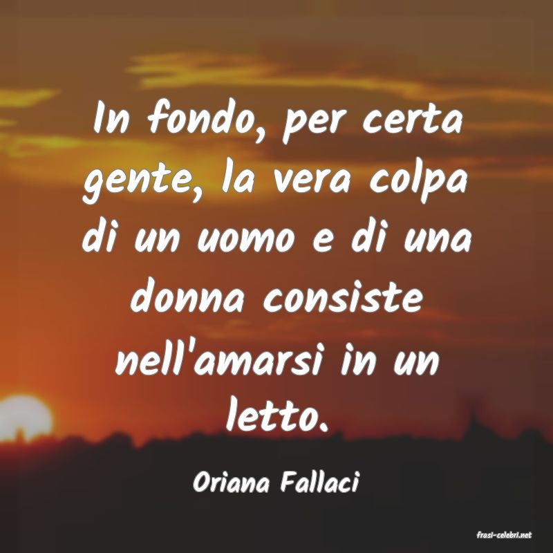 In fondo, per certa gente, la vera colpa di un uomo e di una donna consiste nell'amarsi in un letto.