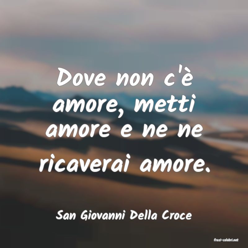 Dove non c'è amore, metti amore e ne ne ricaverai amore. San Giovanni Della Croce