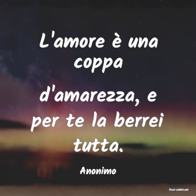 L'amore è una coppa d'amarezza, e per te la berrei tutta.