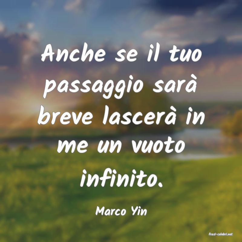 Anche se il tuo passaggio sarà breve lascerà in me un vuoto infinito.