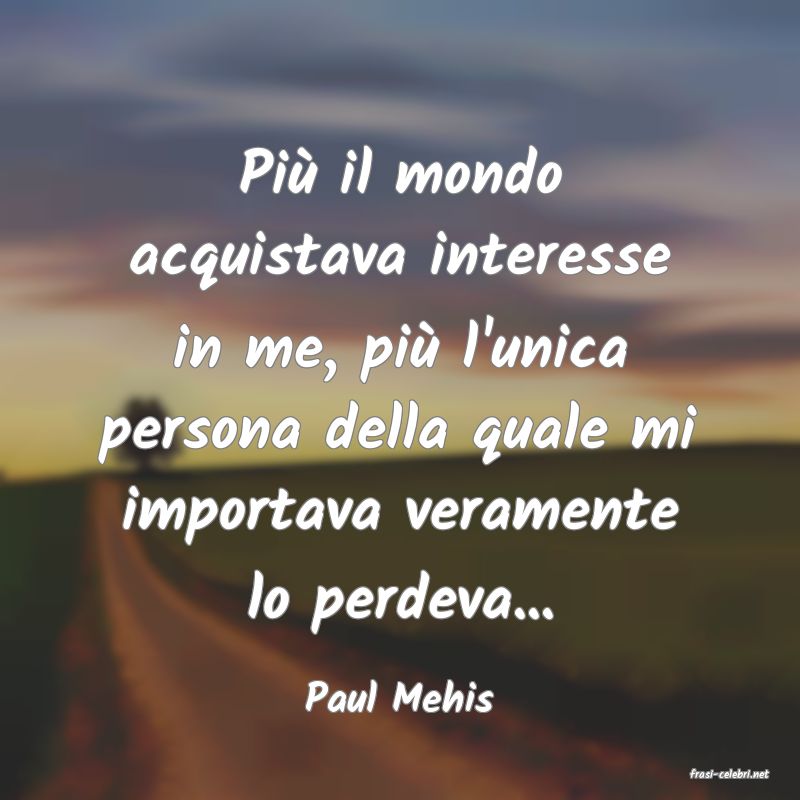 Più il mondo acquistava interesse in me, più l'unica persona della quale mi importava veramente lo perdeva...