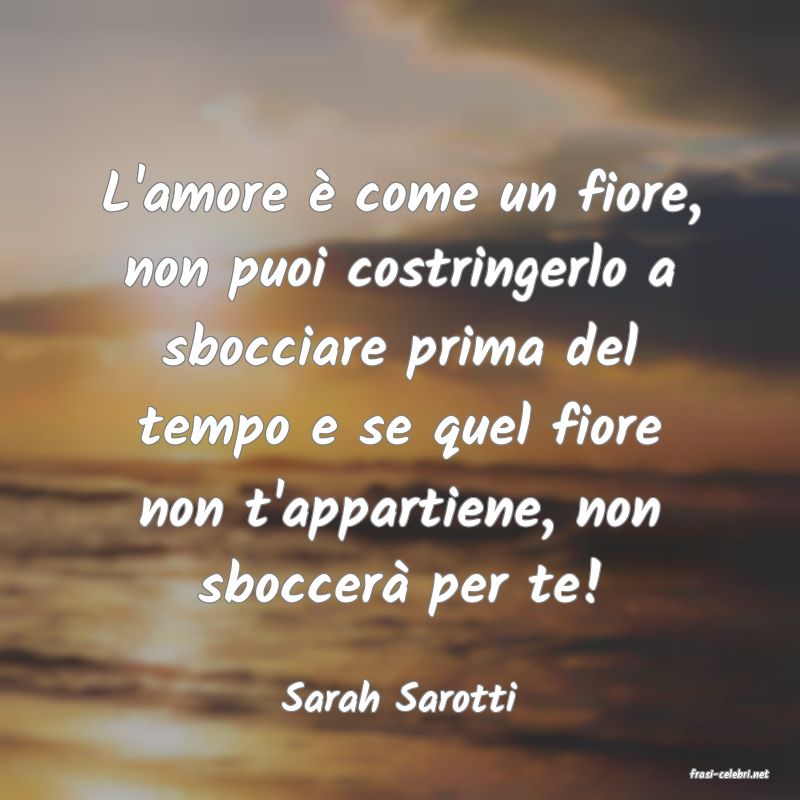 L'amore è come un fiore, non puoi costringerlo a sbocciare prima del tempo e se quel fiore non t'appartiene, non sboccerà per te!