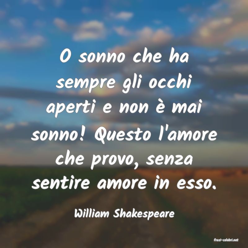 O sonno che ha sempre gli occhi aperti e non è mai sonno! Questo l'amore che provo, senza sentire amore in esso.