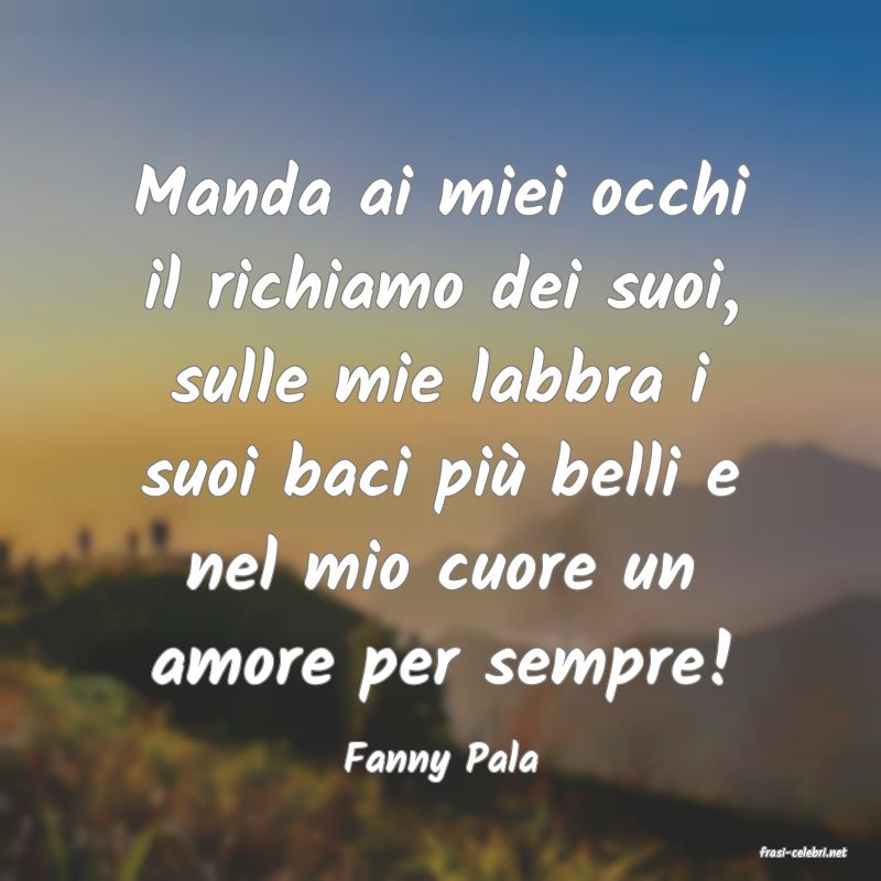 Manda ai miei occhi il richiamo dei suoi, sulle mie labbra i suoi baci più belli e nel mio cuore un amore per sempre!
