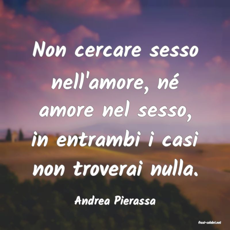 Non cercare sesso nell'amore, né amore nel sesso, in entrambi i casi non troverai nulla.